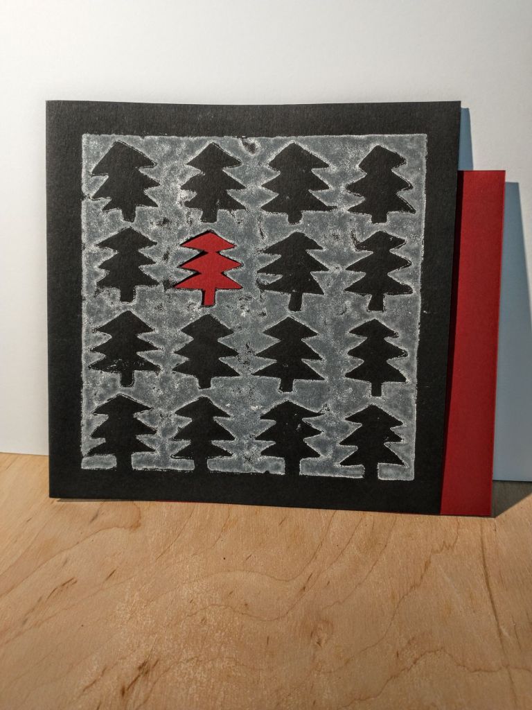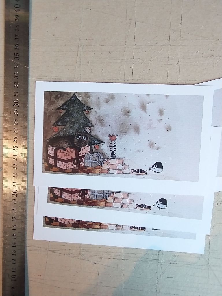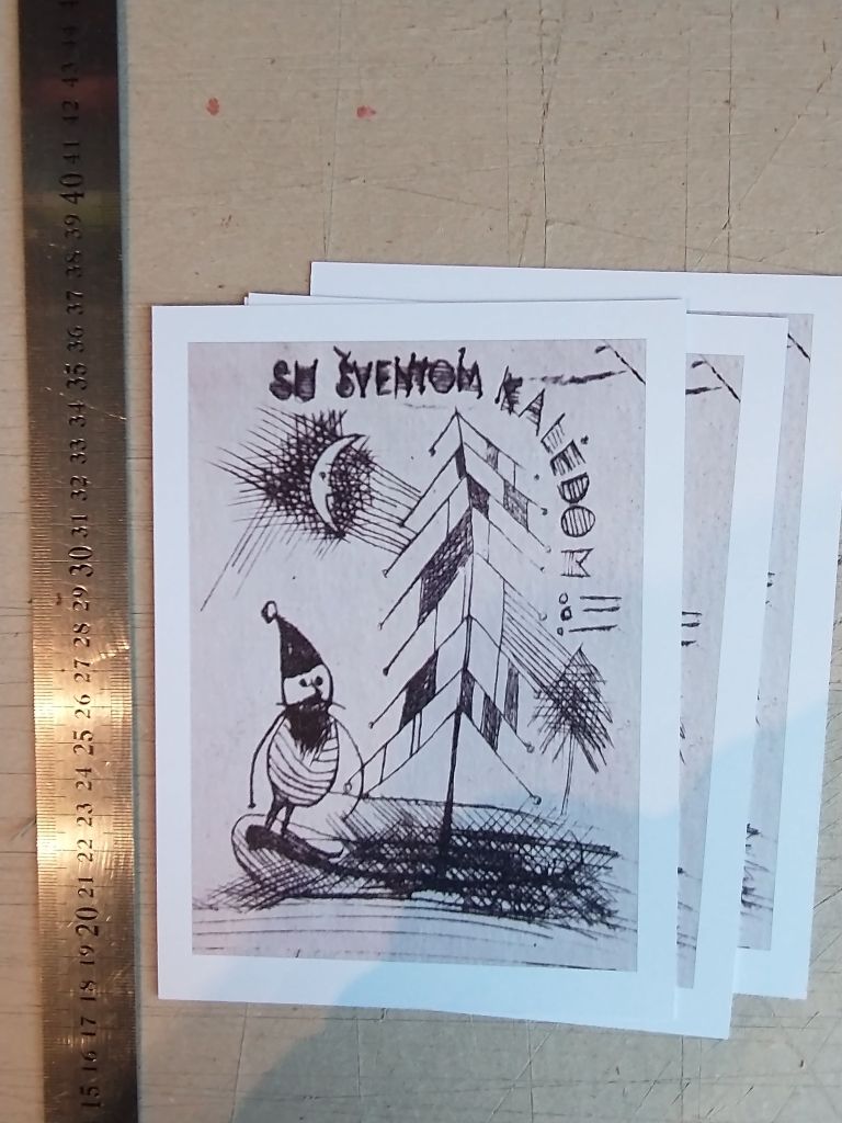 Atvirukai, atspausti rankiniu būdu, (kartono raižinys, medžio raižinys).