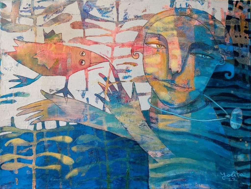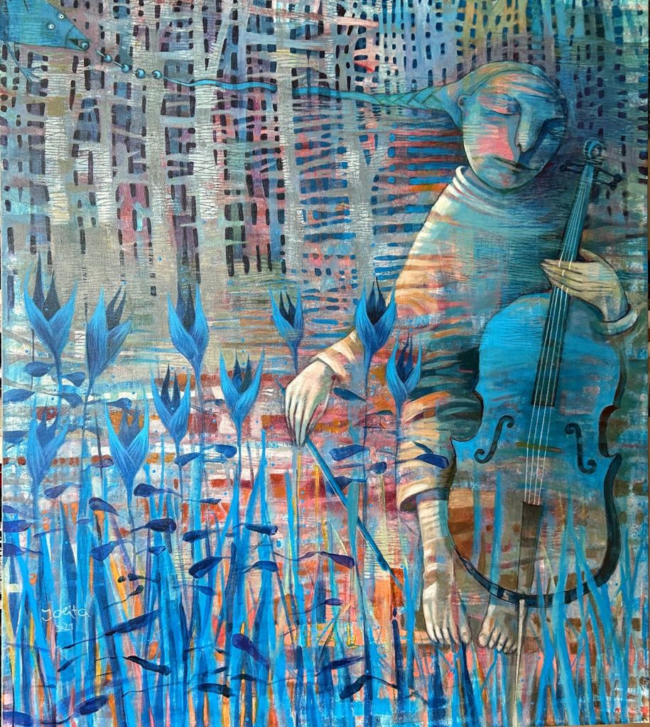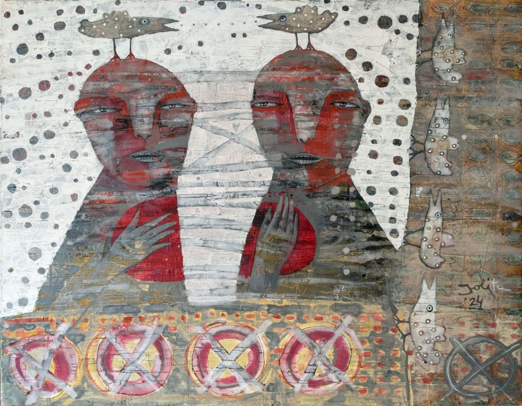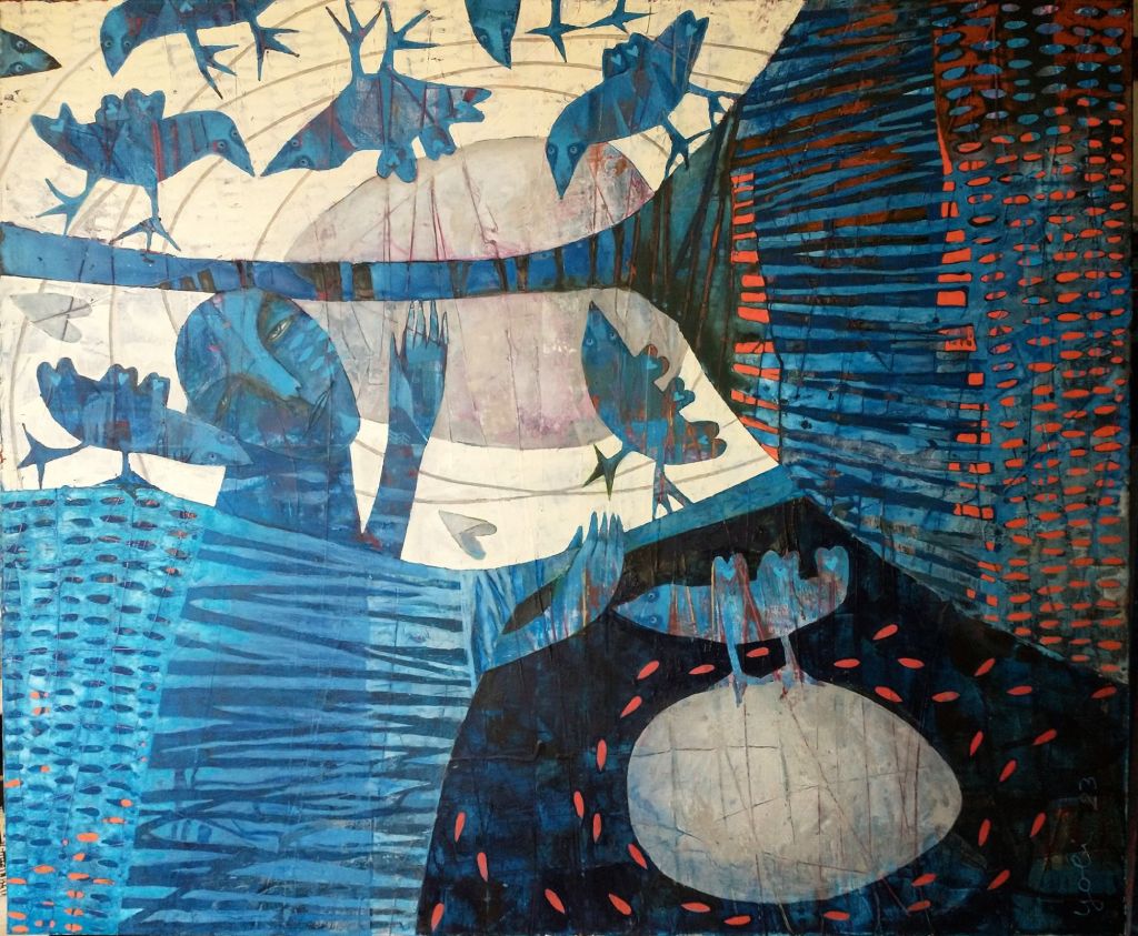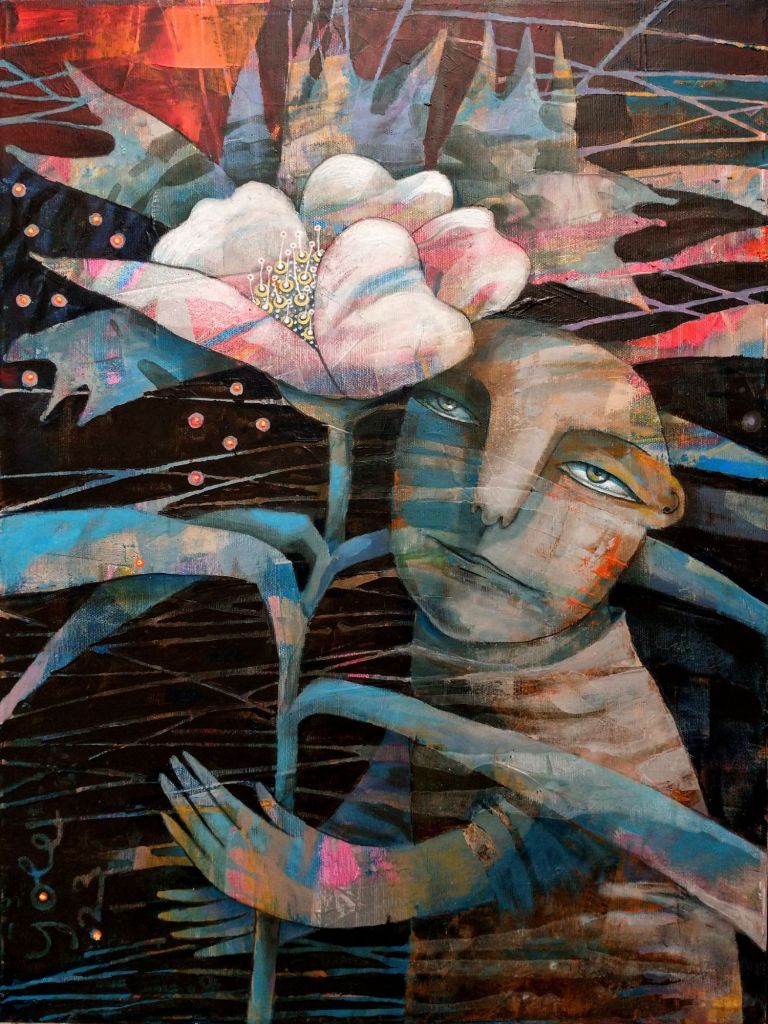 “mormorando apie meilę”, drobė, akrilas, 100×120, 2024 m.